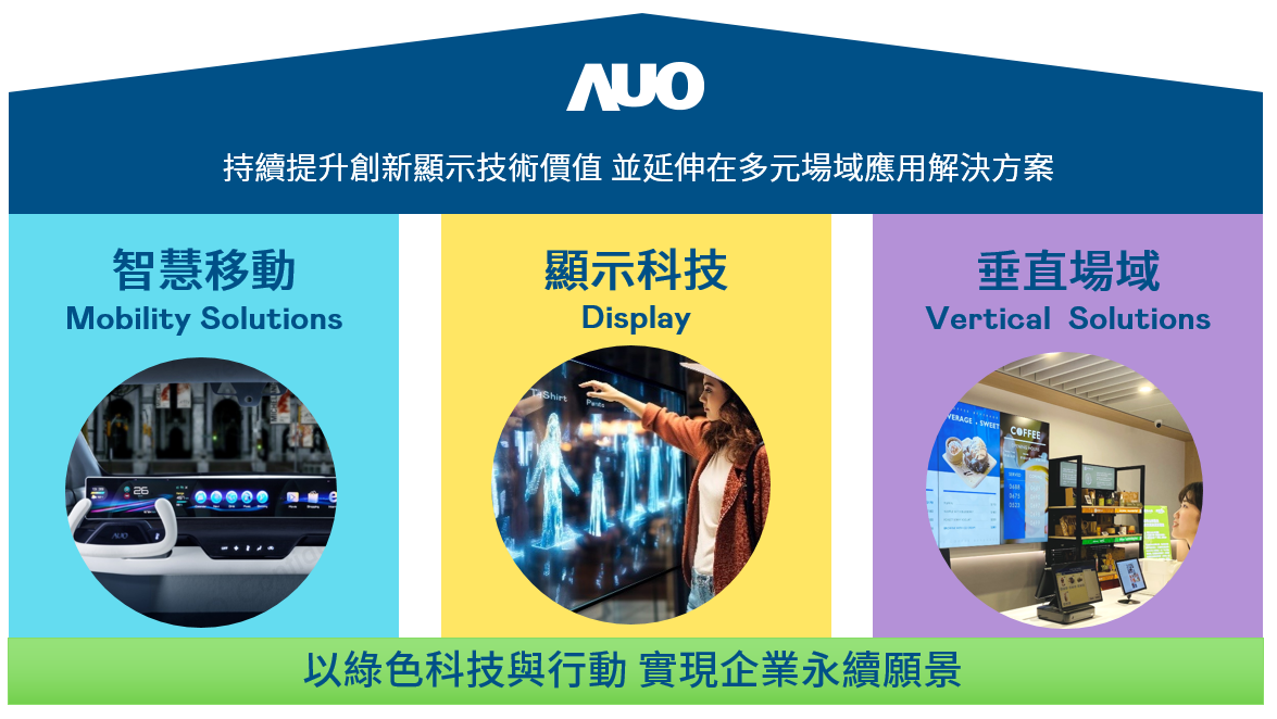 我們持續推動「雙軸轉型」,在精進顯示技術附加價值(Go Premium),與深化垂直市場應用(Go Vertical)的策略下,對應华体汇官网登录入口的優勢競爭力與趨勢,我們奠定顯示技術、智慧移動、垂直場域三大永續營運支柱,在顯示技術領域的根基之上,延伸布局多元場域應用解決方案。將先進顯示科技助力智慧移動及垂直場域發展,並以綠色科技與行動為實踐,在轉型之路上貫徹永續經營之願景。
